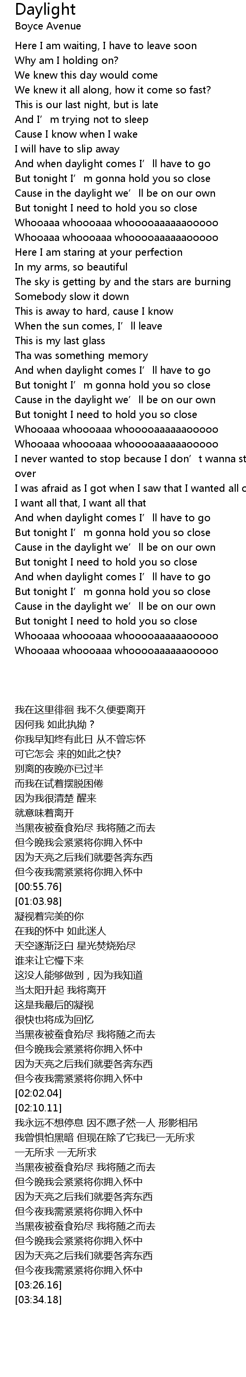| [03:01.57] | Cause in the daylight we’ll be on our own |