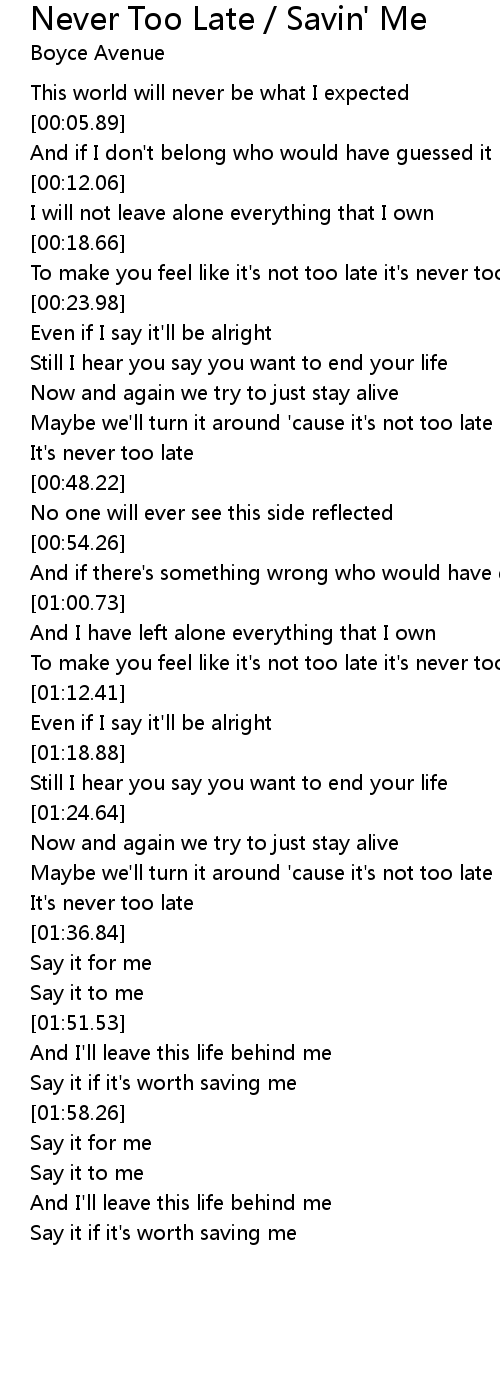 To make you feel like it's not too late it's never too late |