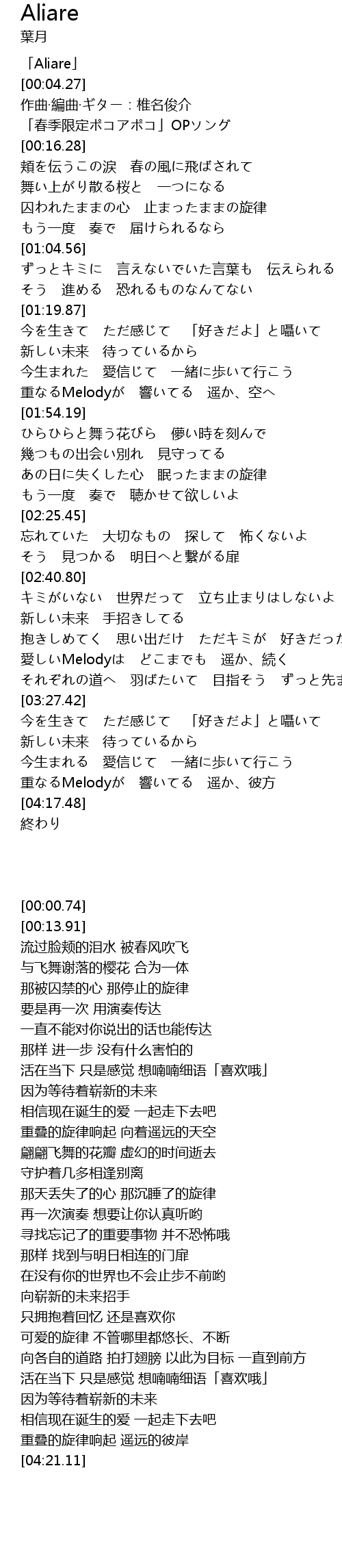 | [00:00.74] | 「Aliare」 |