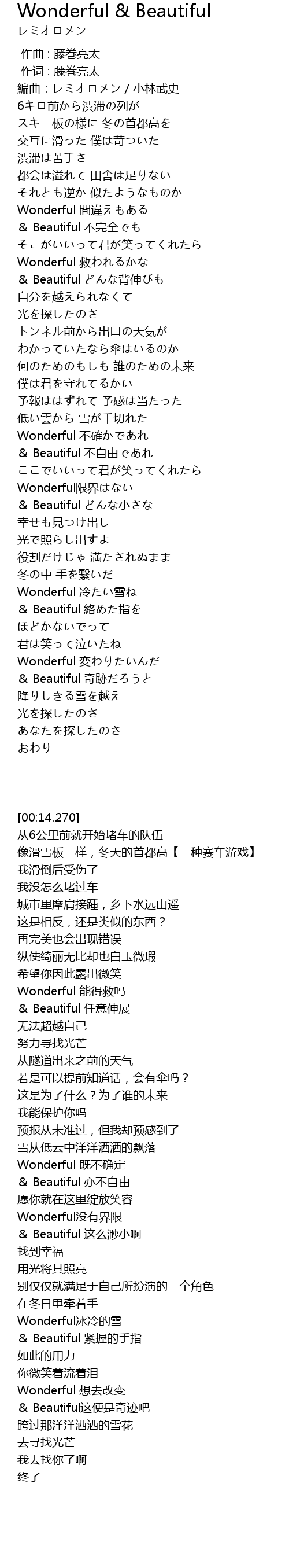 | [00:14.270] | 編曲:レミオロメン/小林武史 |