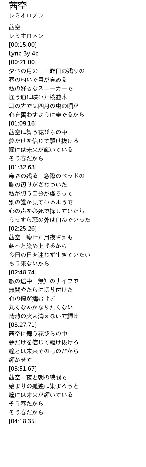 | [03:51.71] | 茜空 夜と朝の狭間で |