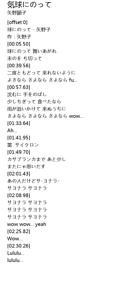 | [00:01.16] | 球にのって - 矢野子 |