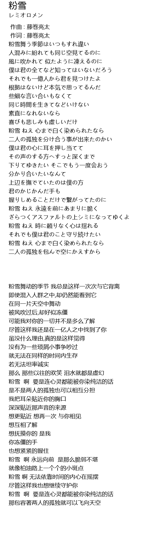 | [03:34.24] | 粉雪 ねえ 永遠を前にあまりに脆く |