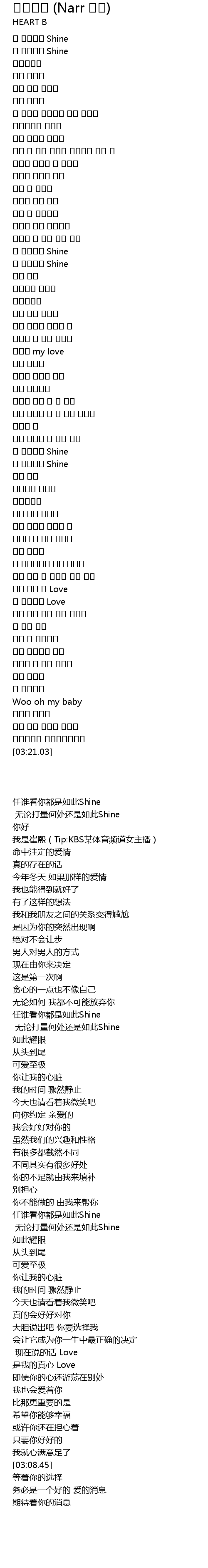 | [00:58.24] | 넌 누가봐도 Shine |