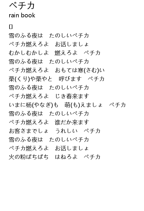 ペチカ燃えろよ おもては寒(さむ)い |