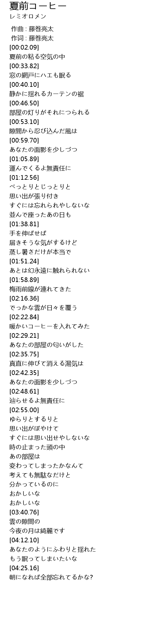 | [02:23.84] | 暖かいコーヒーを入れてみた |