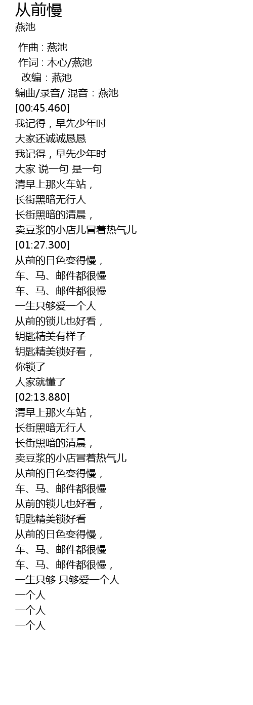 | [00:43.460] | 编曲/录音/ 混音:燕池 |