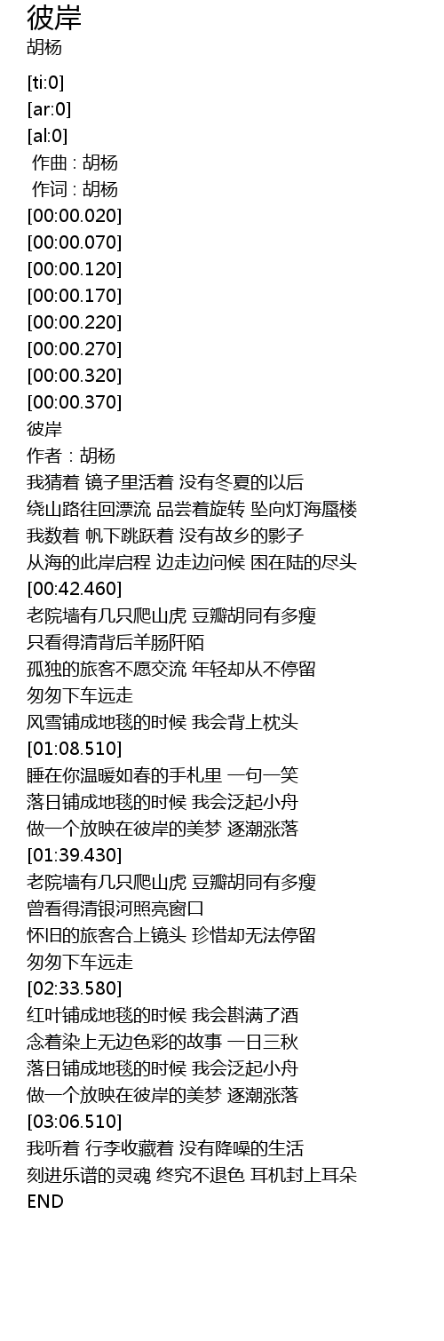 | [00:00.06] | 作词 : 胡杨 |