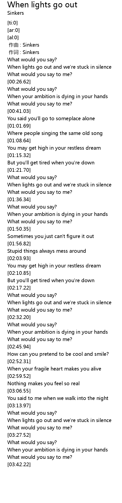 | [02:22.91] | When lights go out and we're stuck in silence |