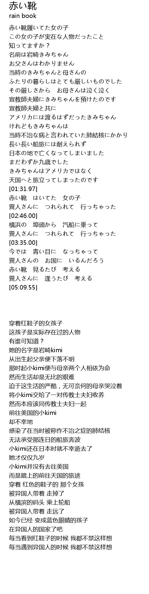 | [04:46.08] | 赤い靴 見るたび 考える |