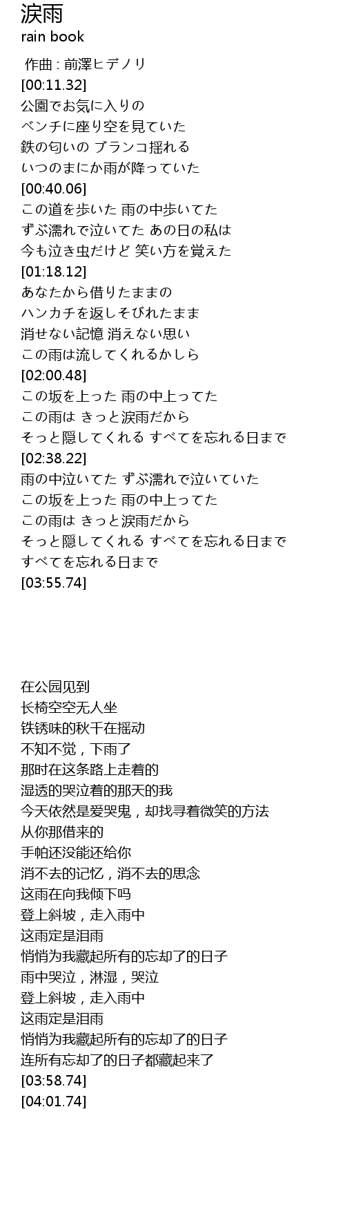 | [03:28.46] | この雨は きっと涙雨だから |