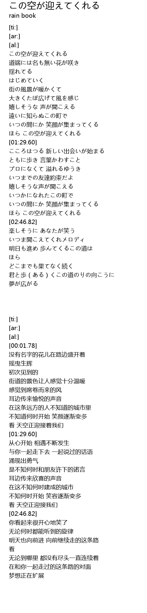 | [00:01.78] | この空が迎えてくれる |