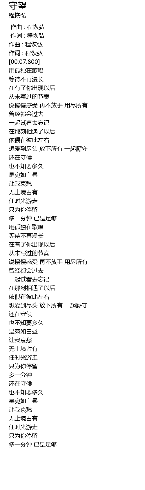 | [03:00.140] | 想爱到尽头 放下所有 一起厮守 |