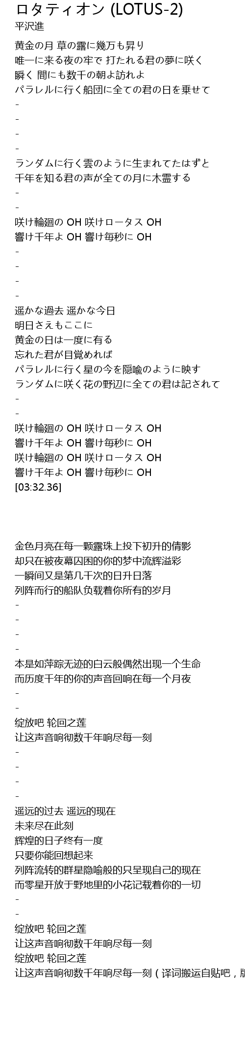 | [03:00.47] | 咲け輪廻の OH 咲けロータス OH |