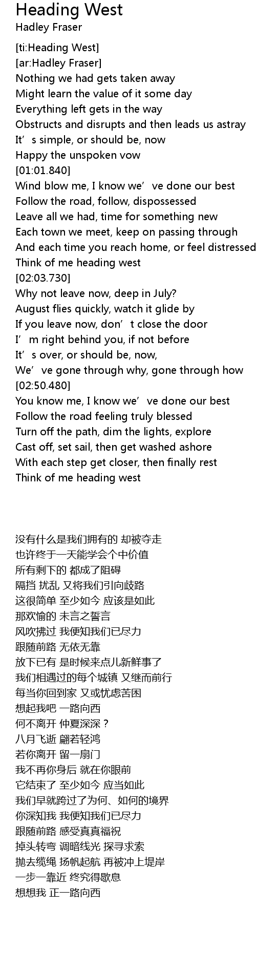 | [01:03.900] | Wind blow me, I know we’ve done our best |