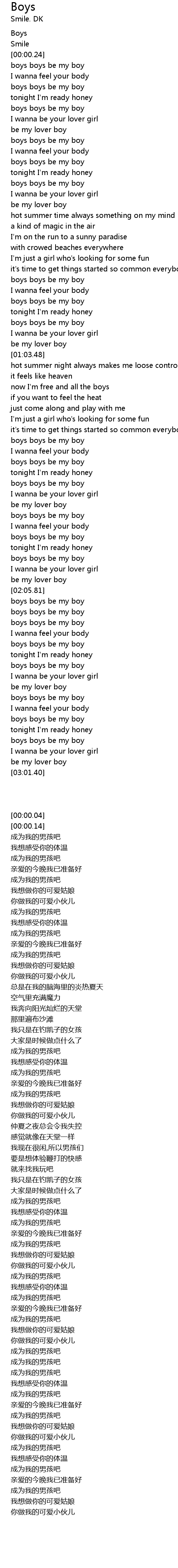| [00:00.04] | Boys |