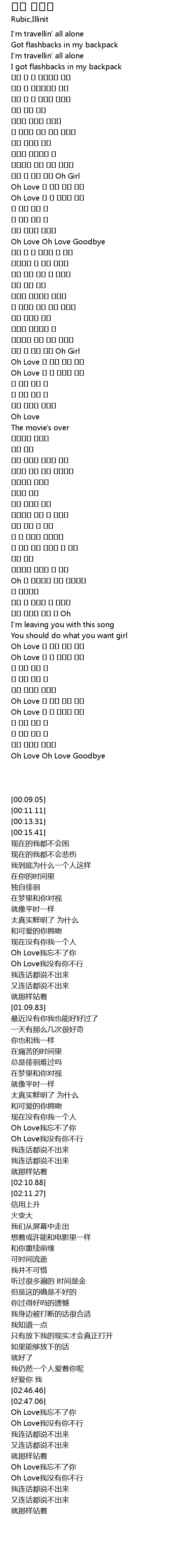 | [03:05.43] | Oh Love 난 너를 잊지 못해 |