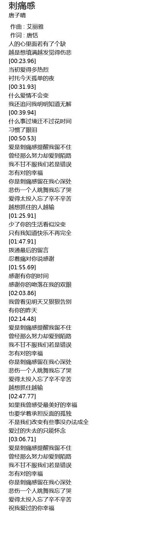 | [02:32.05] | 你是刺痛感留在我心深处 |