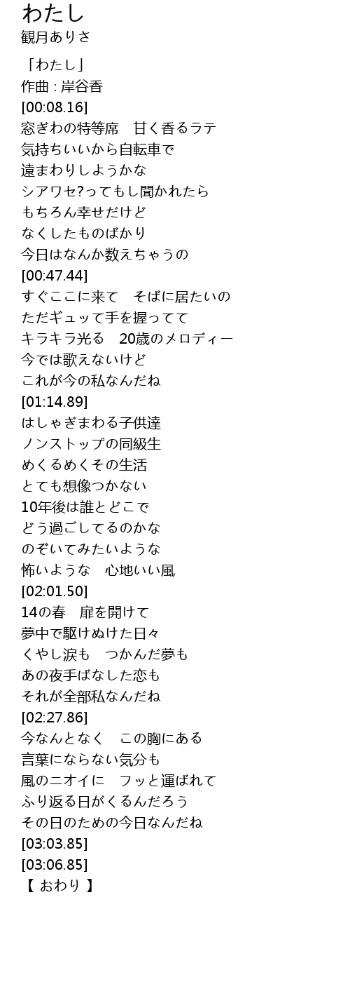 | [00:59.45] | キラキラ光る 20歳のメロディー |