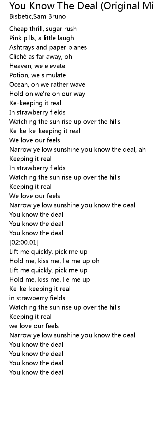 | [01:33.63] | Narrow yellow sunshine you know the deal |