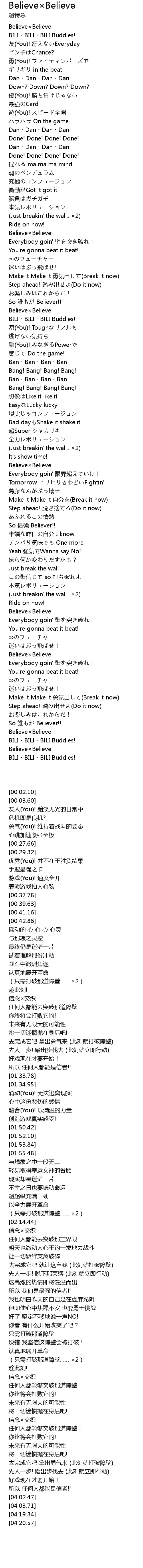 | [02:38.83] | So zui qiang Believer!! |