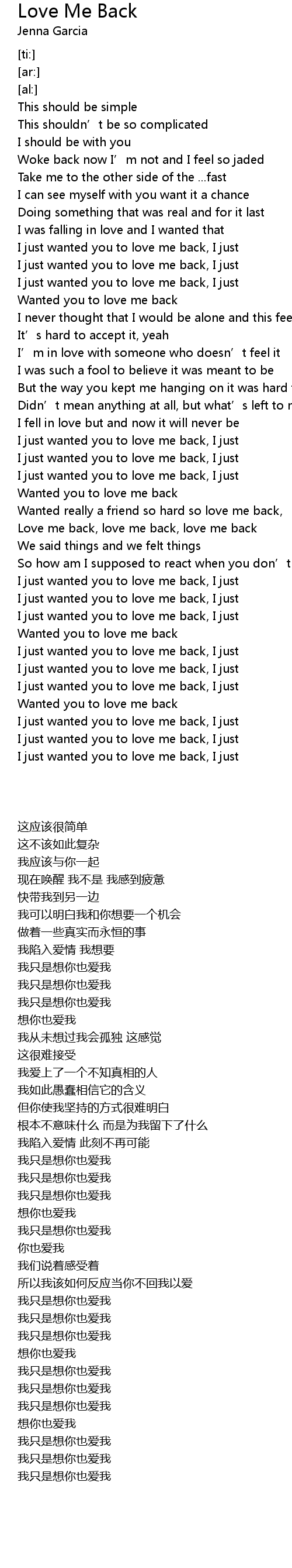 | [01:55.75] | Love me back, love me back, love me back |