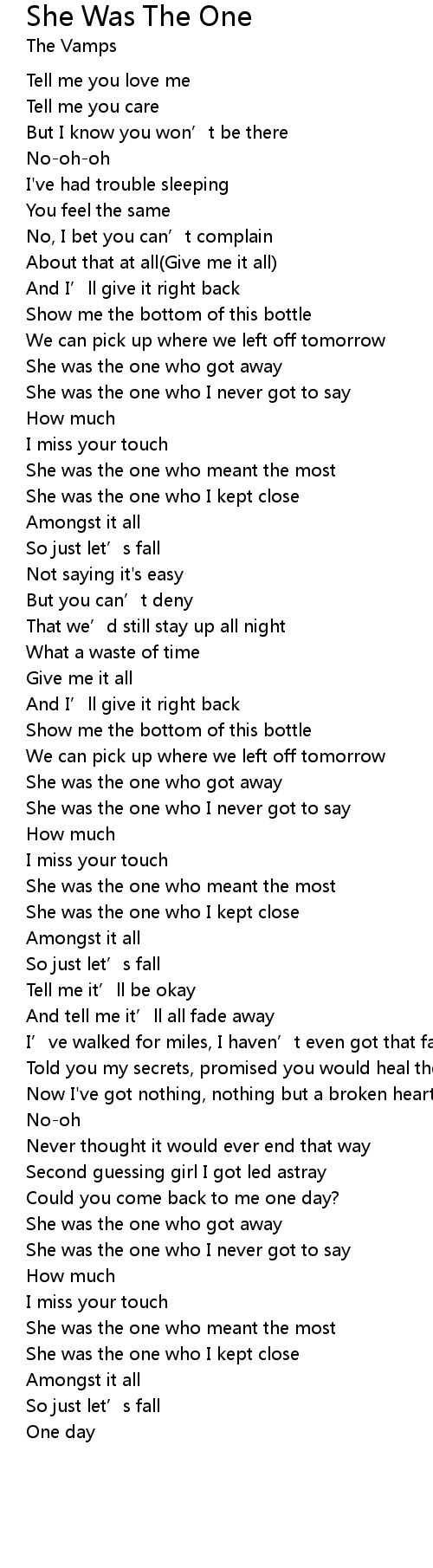 | [00:53.83] | She was the one who I never got to say |