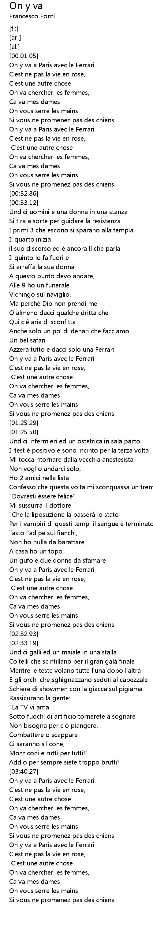 | [00:03.41] | On y va a Paris avec le Ferrari |