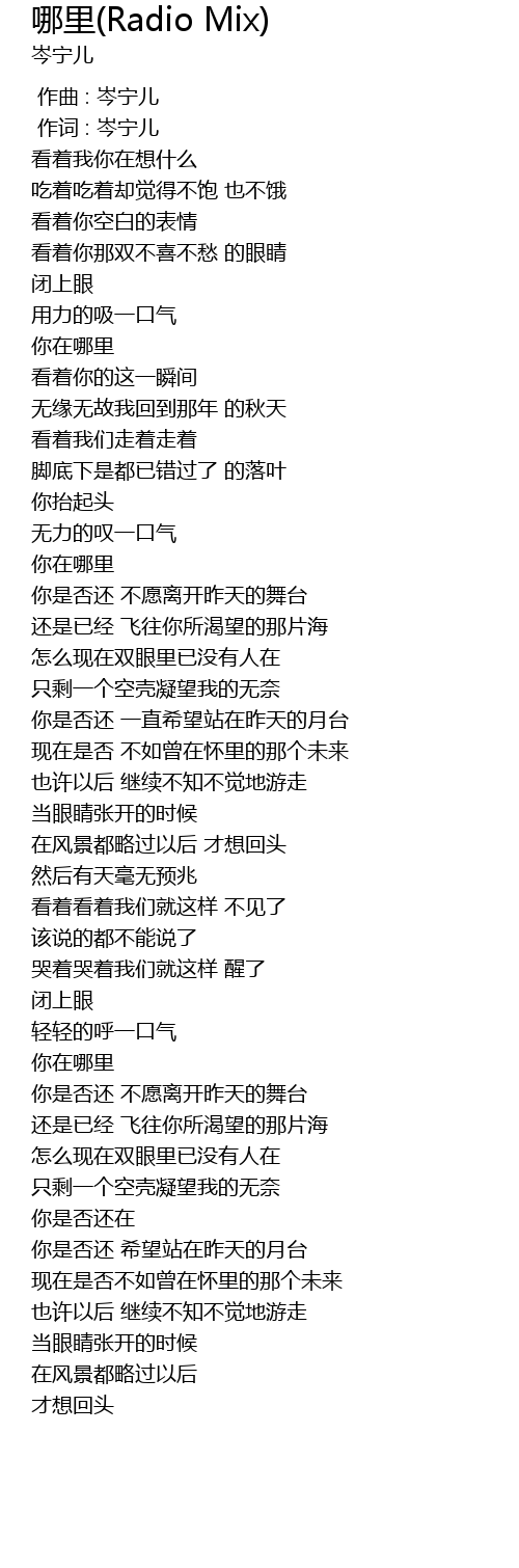 | [00:01.00] | 作词 : 岑宁儿 |