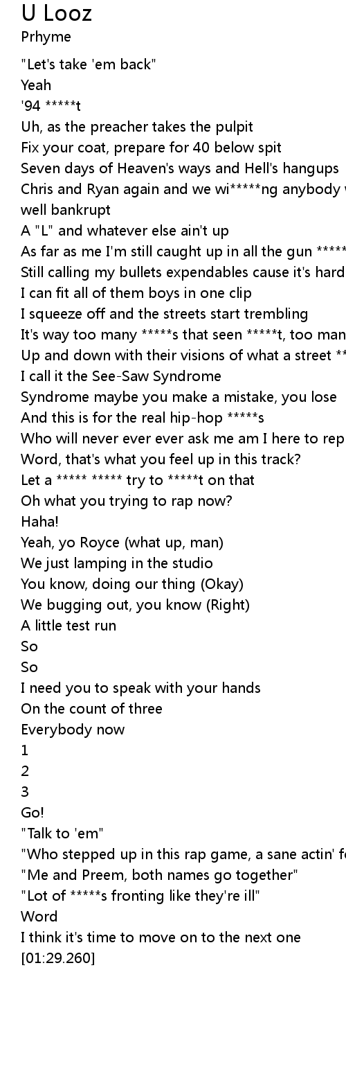 | [00:18.250] | A "L" and whatever else ain't up |
