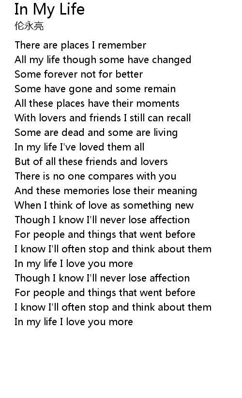 In My Life Lyrics