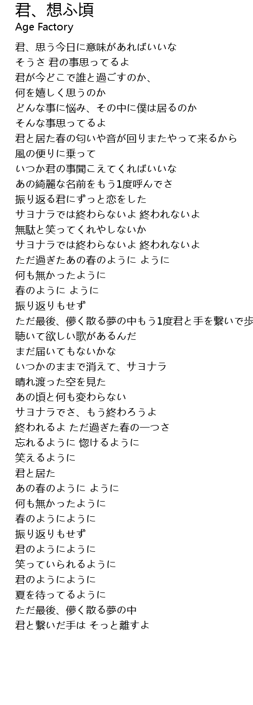 | Song | 君、想ふ頃 |