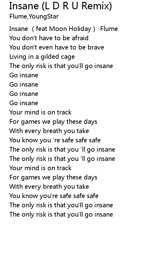 | [00:00.851] | Insane (feat Moon Holiday)-Flume |