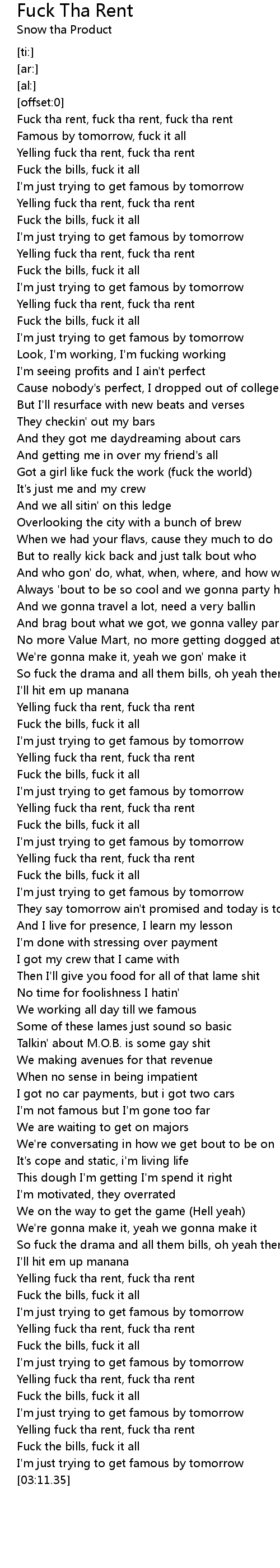 Fuck tha rent, fuck tha rent, fuck tha rent |