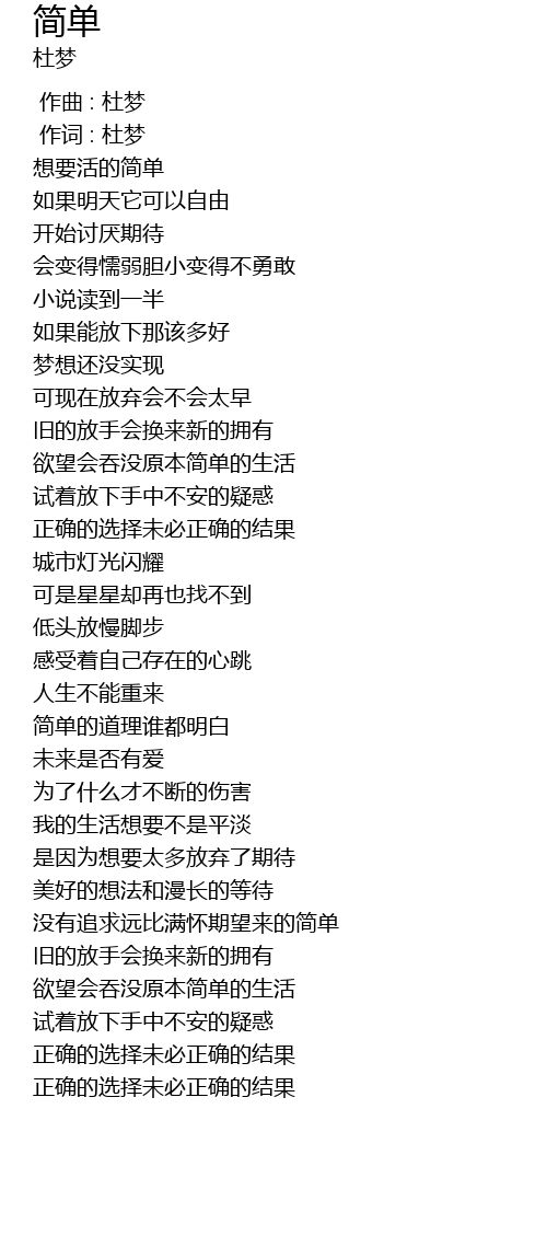 | [00:34.02] | xiǎng yào huó de jiǎn dān |