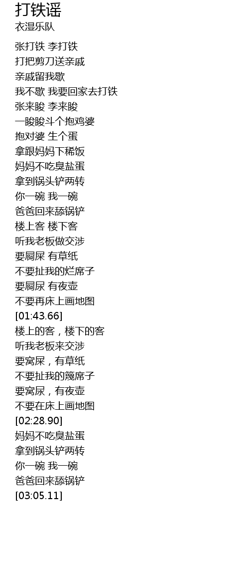 | [00:39.25] | 我不歇 我要回家去打铁 |