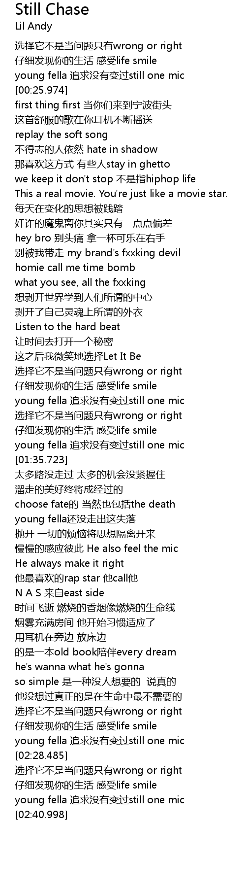 | [02:24.790] | young fella zhuī qiú méi yǒu biàn guò still one mic |