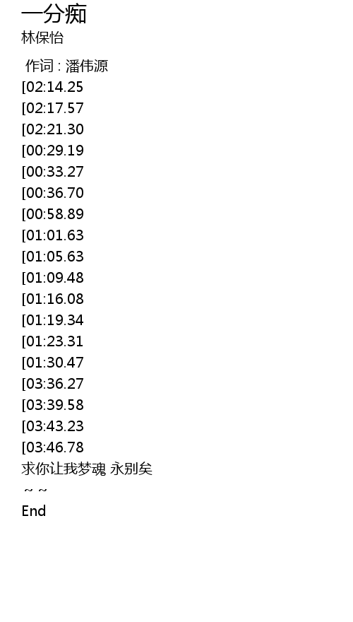 | [04:01.32][03:43.23][01:45.15] | 一分痴 剩一分痴 |