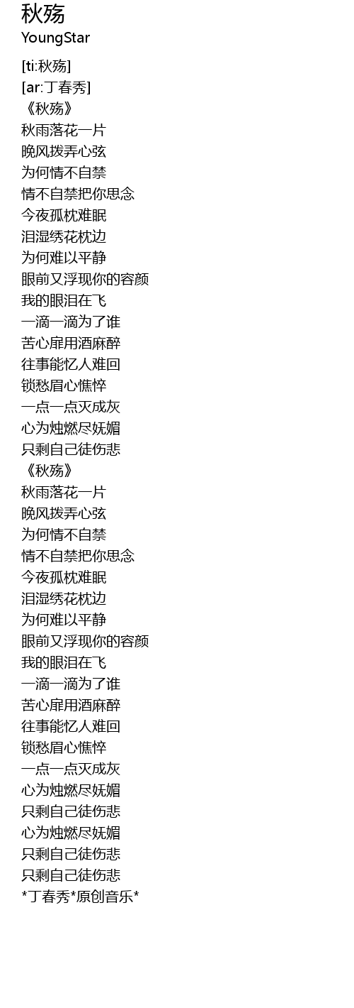 | [04:20.616] | dīng chūn xiù yuán chuàng yīn yuè |