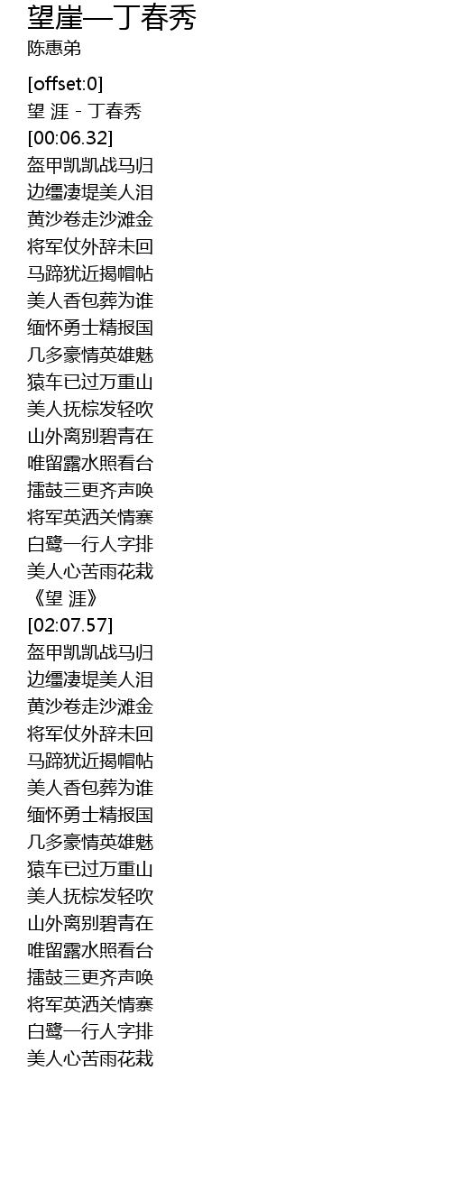 | [00:01.76] | 望 涯 - 丁春秀 |