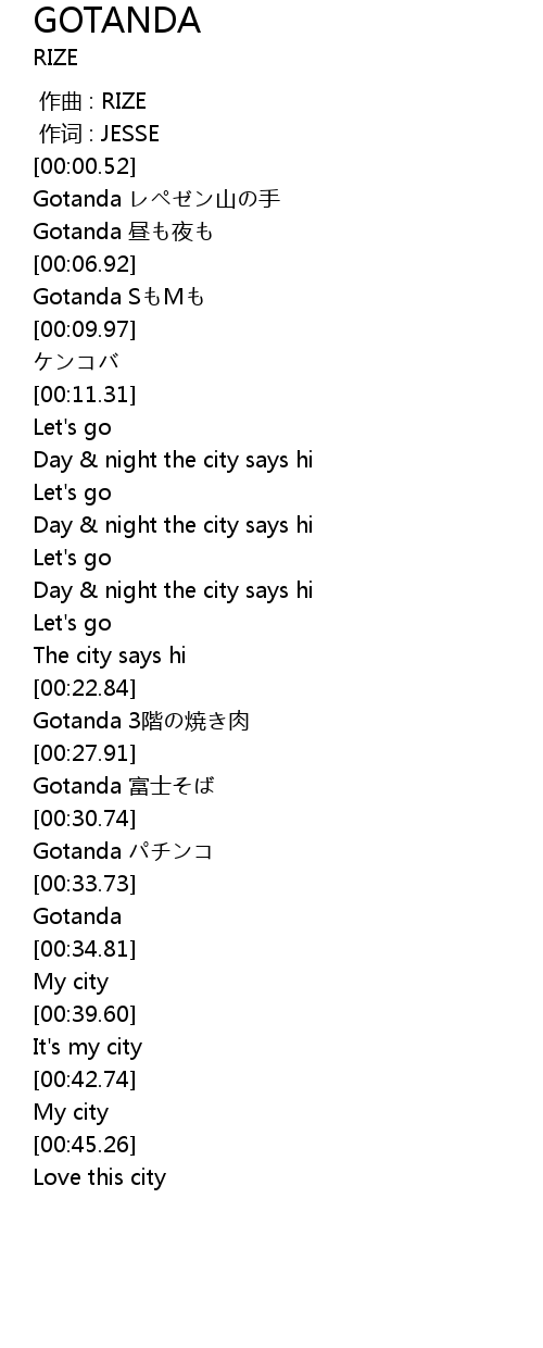 | [00:01.80] | Gotanda レペゼン山の手 |