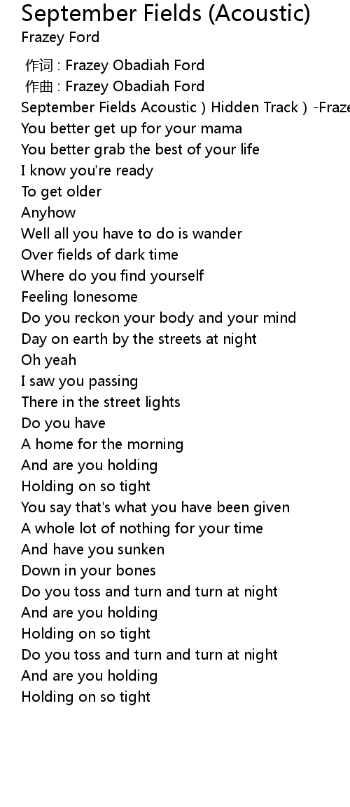| [00:00.570] | September Fields Acoustic Hidden Track Frazey Ford |