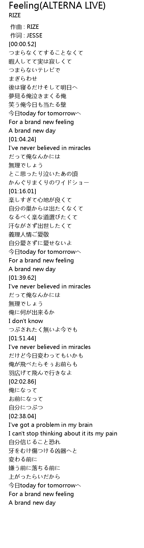 | [00:53.57] | 夢見る俺泣きまくる俺 |