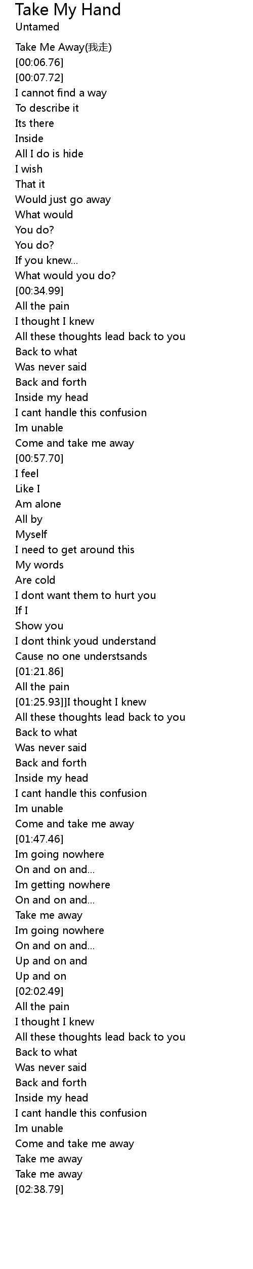 | [02:23.26] | Come and take me away |