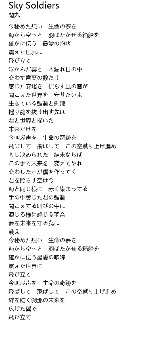 | [02:45.55] | 海から空へと 羽ばたかせる箱船を |