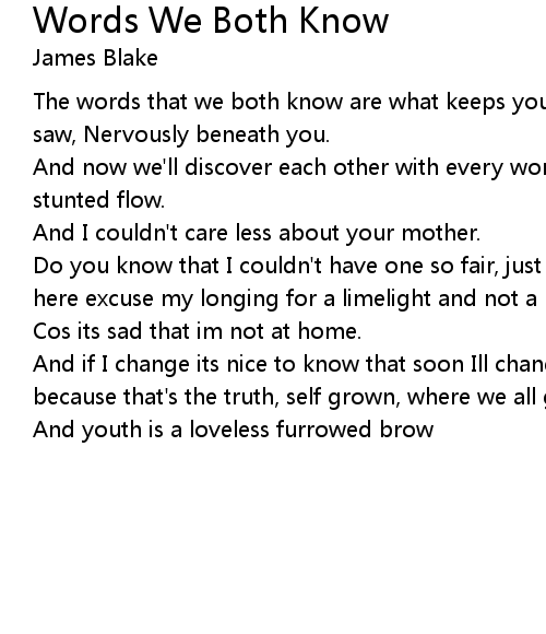 And now we'll discover each other with every word that we both know In between a stunted flow. |