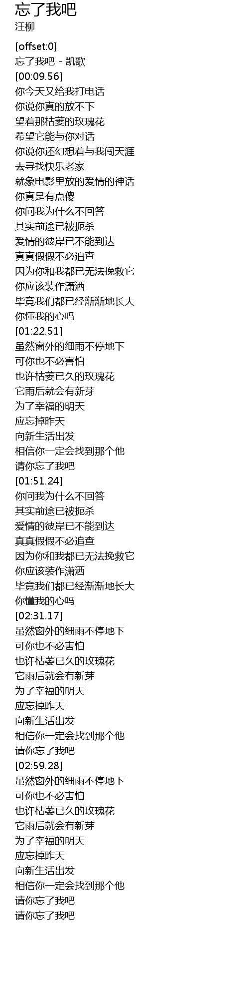 | [00:02.91] | 忘了我吧 - 凯歌 |