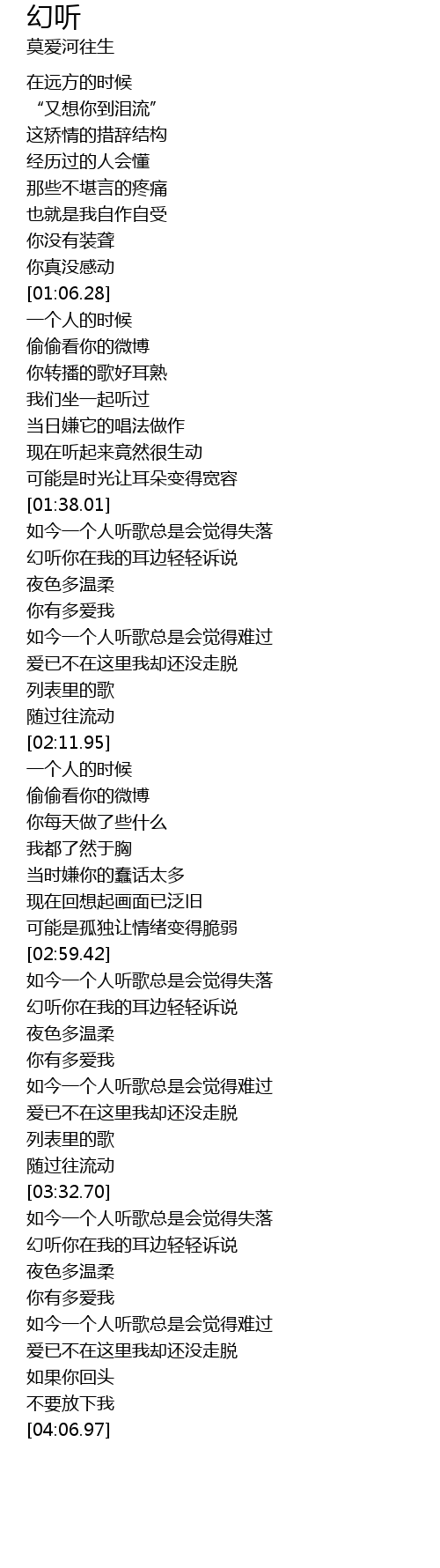 | [01:44.73] | 幻听你在我的耳边轻轻诉说 |