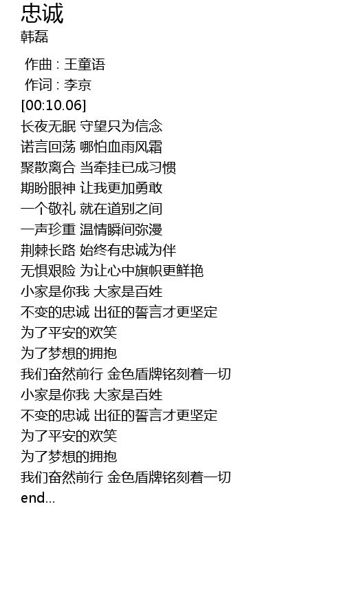| [02:06.13] | 不变的忠诚 出征的誓言才更坚定 |