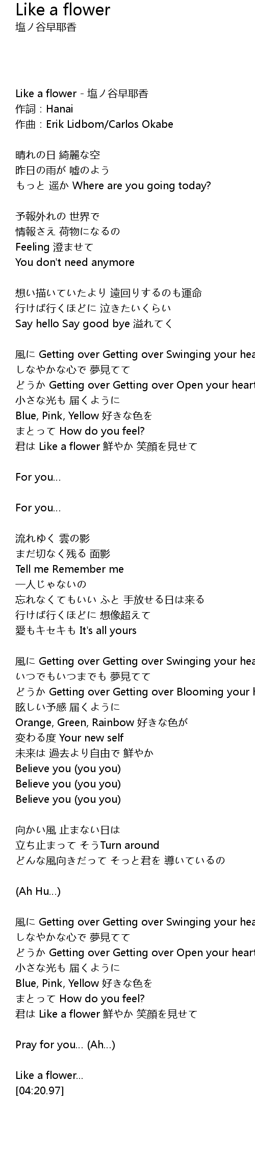 | [04:19.98] | Like a flower... |